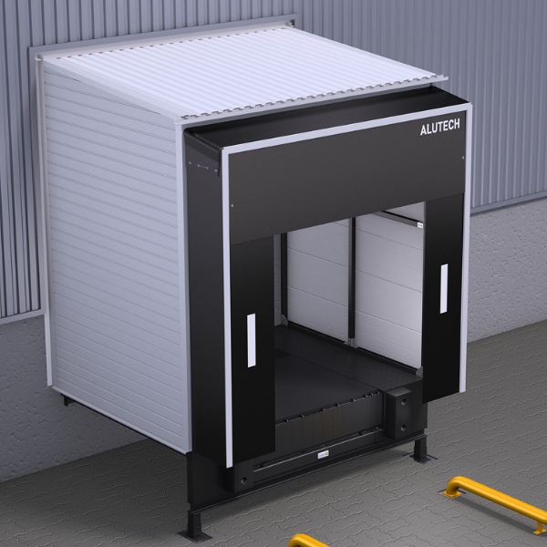 Главная / Перегрузочное оборудование / Перегрузочные тамбуры / Перегрузочный тамбур Alutech DH (30 градусов, заполнение профлист)
